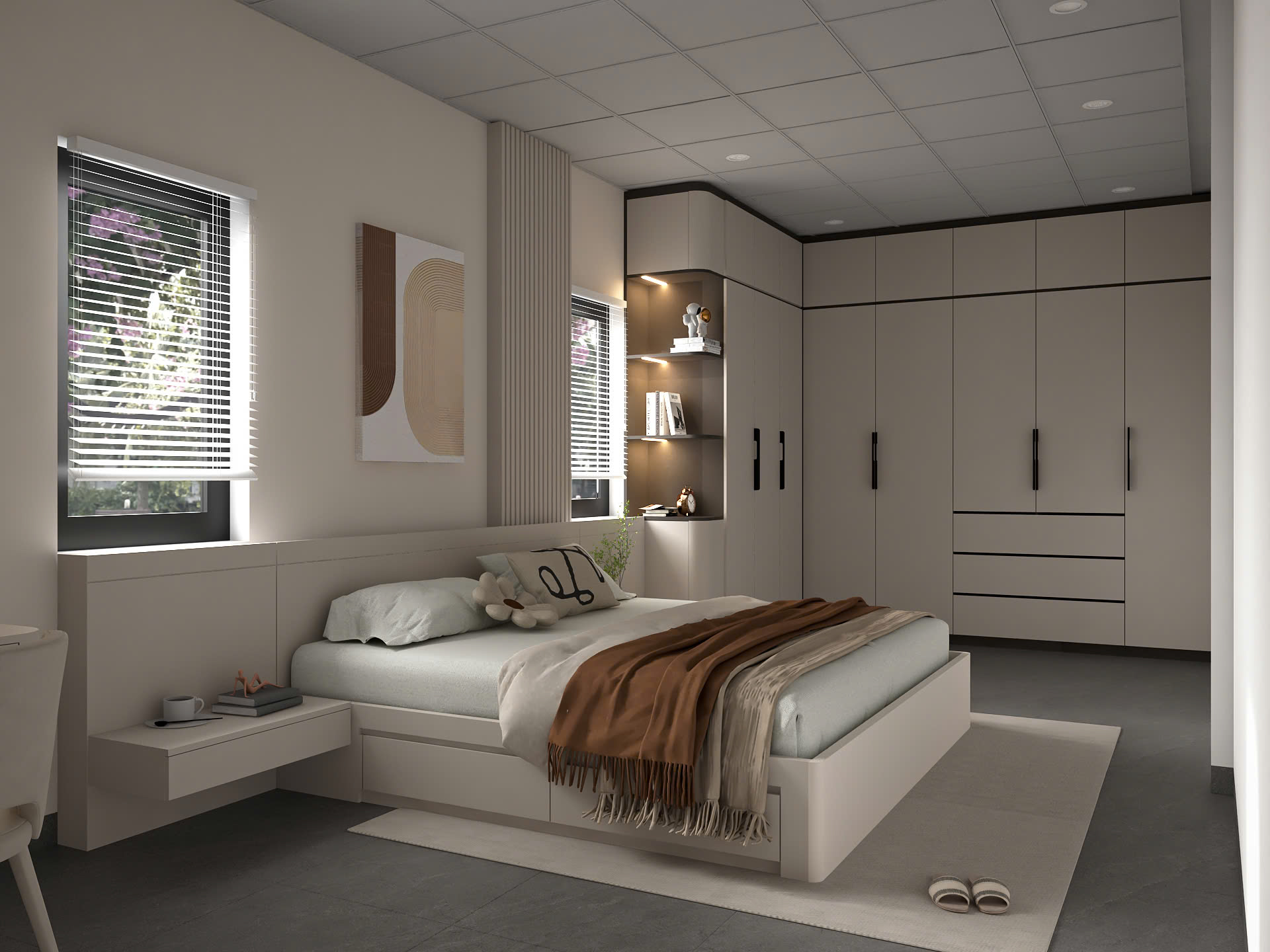 Đặc trưng: Tông màu trung tính (trắng, be, xám nhạt) làm chủ đạo, kết hợp nội thất làm từ vật liệu tự nhiên như gỗ, mây, tre.